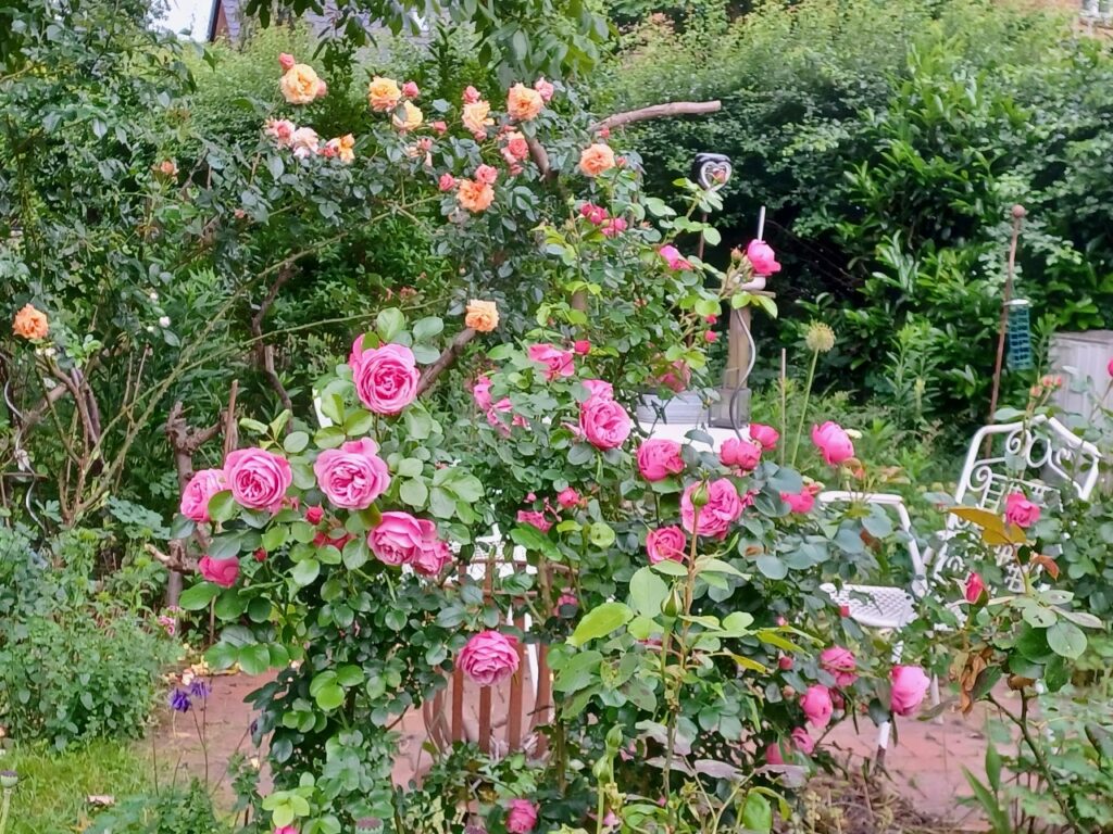Das ist der Garten in einem fantastischem Rosenjahr. Das bedeutet auch: viel Regen.